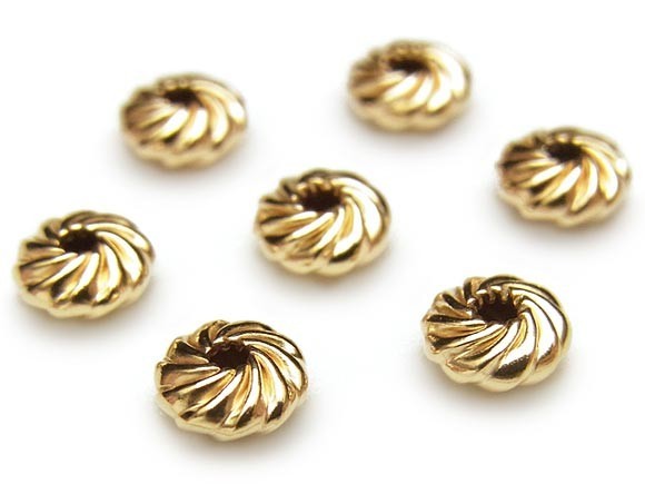 【14KGF(14金ゴールドフィルド)とは?】14KGF(14金ゴールドフィルド)は、真鍮などの芯となるパーツの総重量の5%に当たる14金(14K)を高熱で圧着させたもになります。