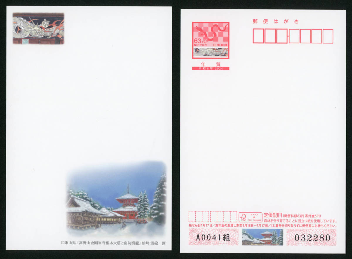 22596A2◆複数出品◆2024年用 和歌山県 高野山63円★絵入り年賀はがき 令和6年用