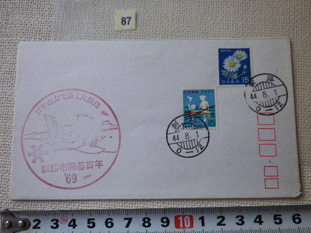- FDC 釧路市開基百年 1969年 2貼2消 珍しい●87●送料94円●