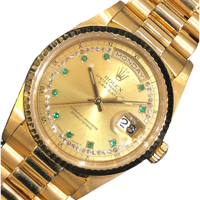 > ロレックス ROLEX デイデイト 18238LE S番 シャンパン K18イエローゴールド、ダイヤモンド、エメラルド 腕時計 メンズ 中古
