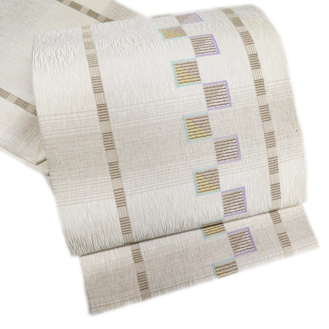 - 袋帯 中古 リサイクル 正絹 カジュアル 仕立て上がり 三通 砂色 多色 きもの北條 A966-12