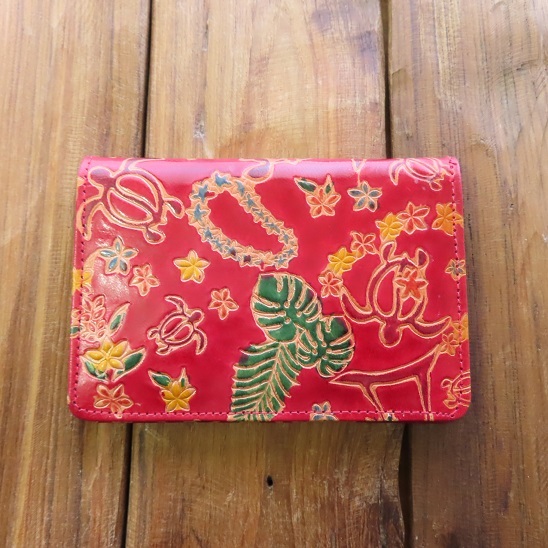 - 〓 新品 〓 ヤンピー パスポートケース 〓 山羊革 ホヌ 海亀 エスニック アジアン アジア レッド おしゃれ 〓T135