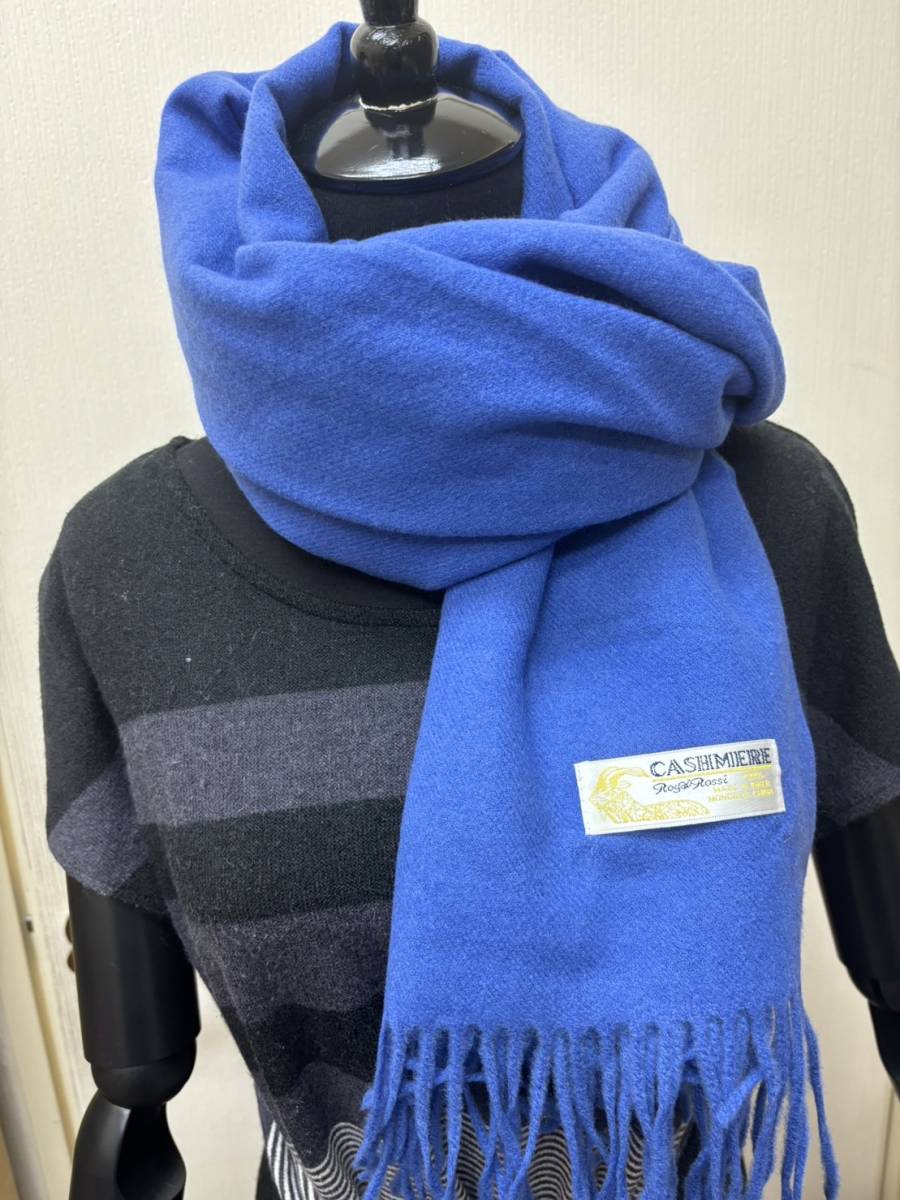 - カシミア100%英国”ストール”新作サックスブルー〇*:..azu00c
