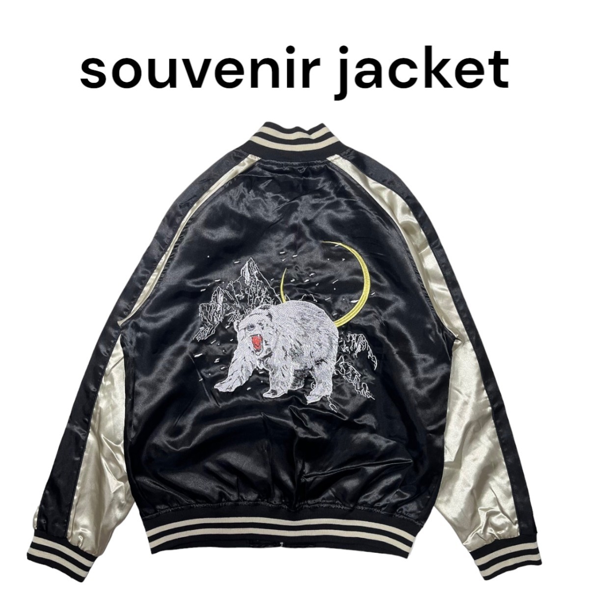 - レアデザイン 古着 スカジャン 熊 月 スーベニアジャケット Lサイズ