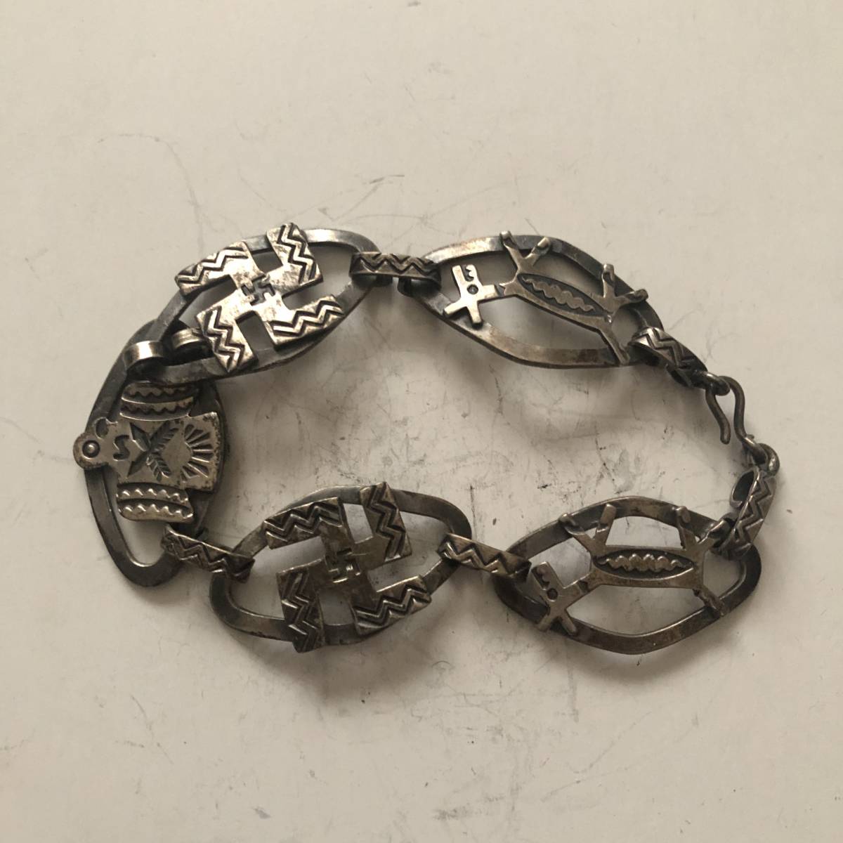 > 希少 ナバホ 卍 ホース サンダーバード デザイン シルバー ビンテージ ブレスレット バングル ヴィンテージ インディアン ジュエリー