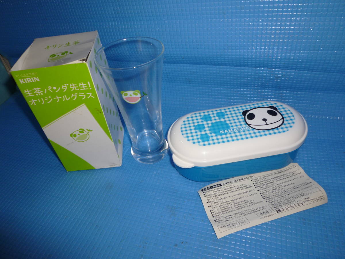 - b★未使用・非売品★2011年キリン生茶 パンダ先生! オリジナルグラス(口開き)とランチBOX(お弁当箱)