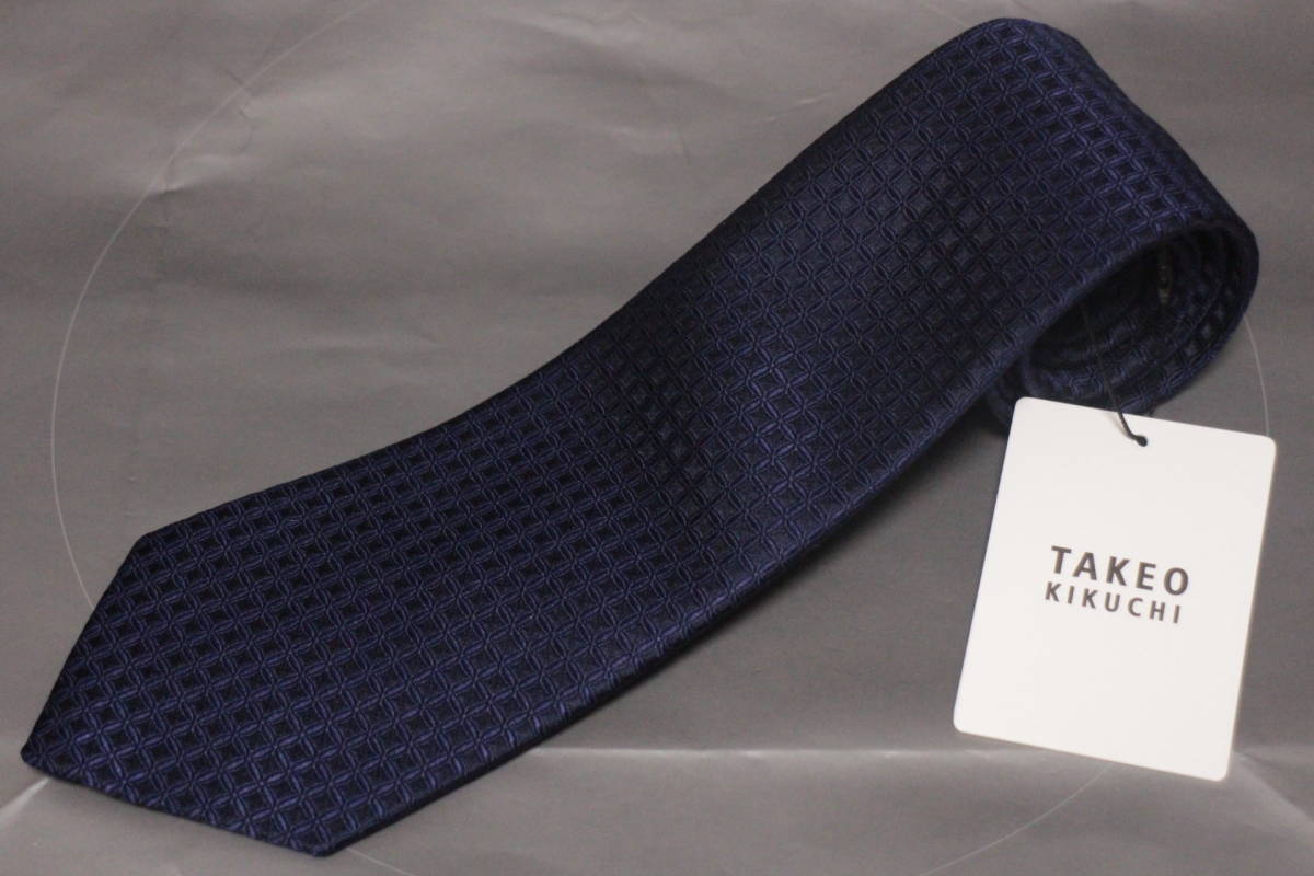 - タケオキクチ新品ネクタイ超美麗艶ネイビー茄子紺ソリッド極上西陣織七宝柄フルハンドメイド限定プロダクトノーツジャパン