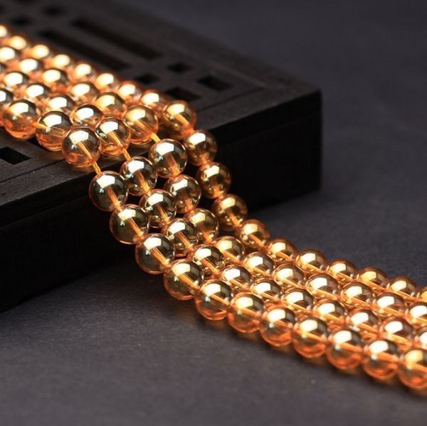 - [EasternStar] 海外発送 ゴールド メッキ 水晶 クォーツ Quartz 玉サイズ6mm 1連売り 長さ約40cm