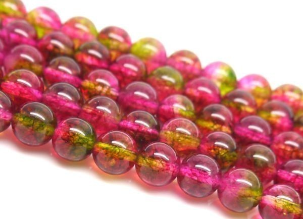 > [EasternStar] 海外発送 蛍水晶 ホタル クォーツ 西瓜水晶 Quartz 玉サイズ12mm 1連売り 長さ約40cm