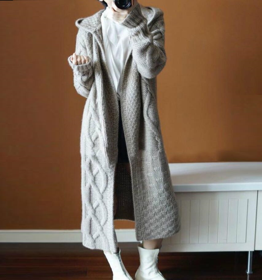 - 秋冬 ロングカーディガン ニットカーディガン キレイめ フード付き リブ編み ロング 長袖 羽織り アウター 通勤 カジュアル 大人 灰