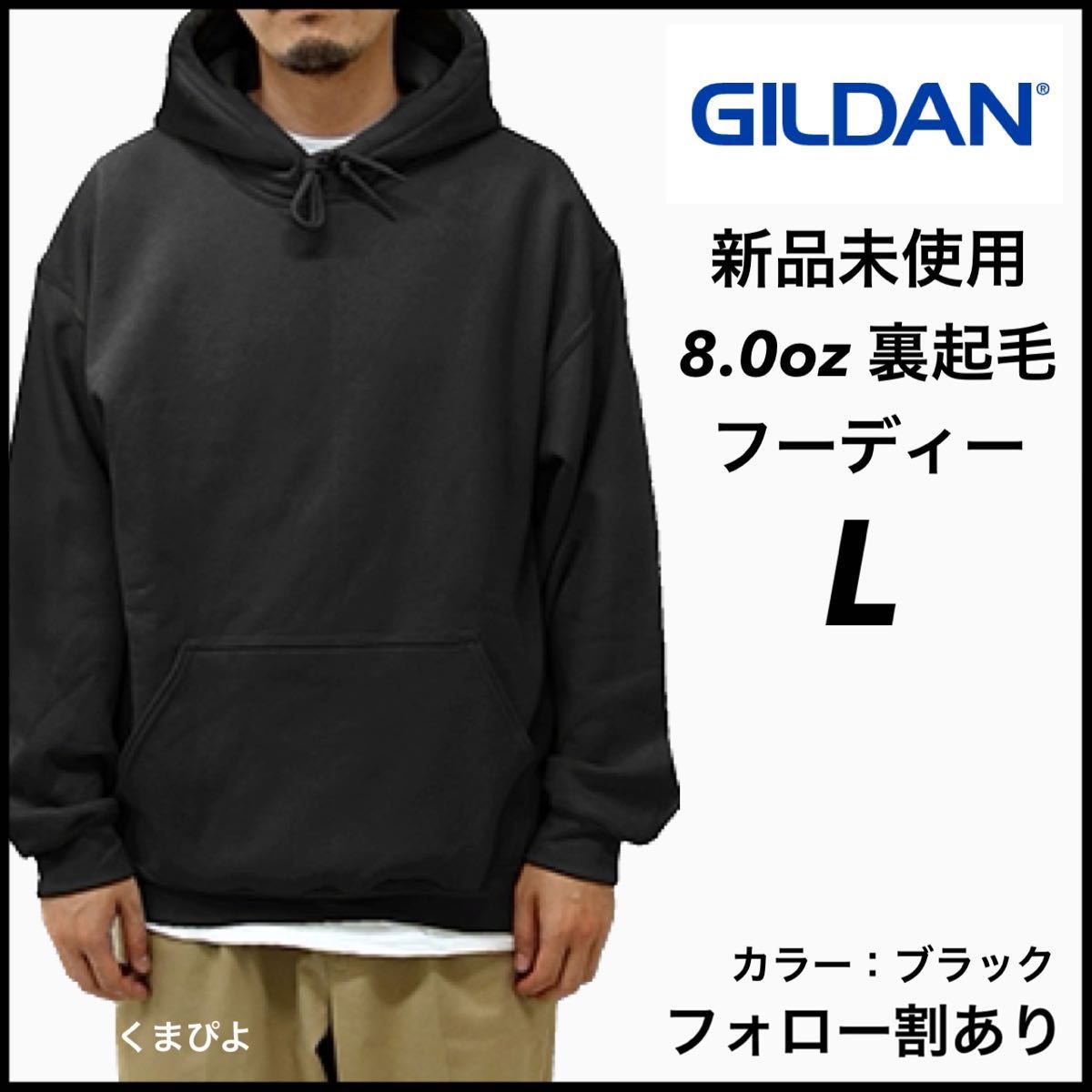 - 新品未使用 ギルダン 8oz プルオーバーフーディー 裏起毛 パーカー GILDAN 黒 ブラック L
