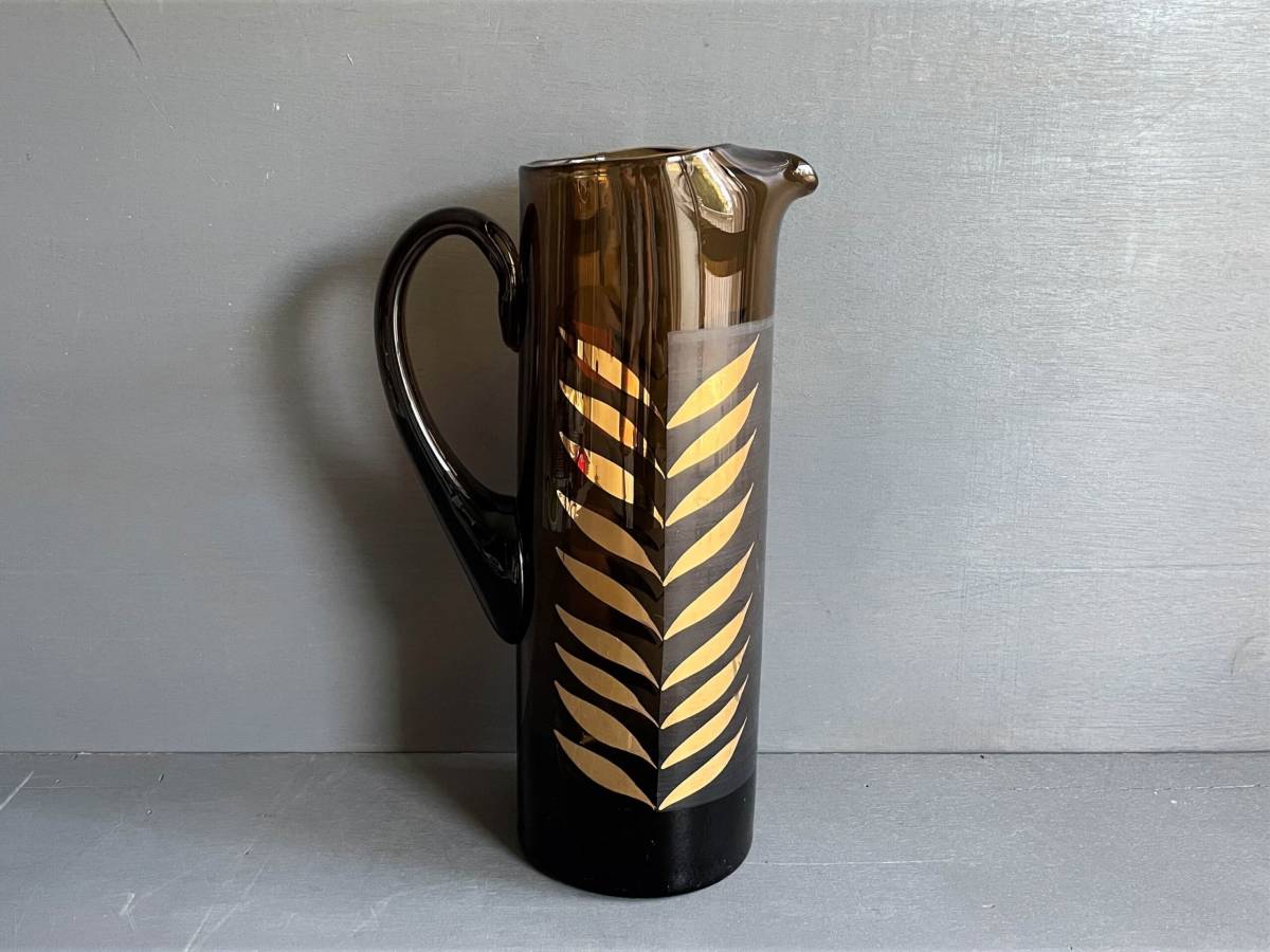 > [9110]ジャグ 1.35L アンバー ポット デキャンタ ヴィンテージ ガラスポット ガラスジャグ 検)チェコガラス ボヘミアガラス