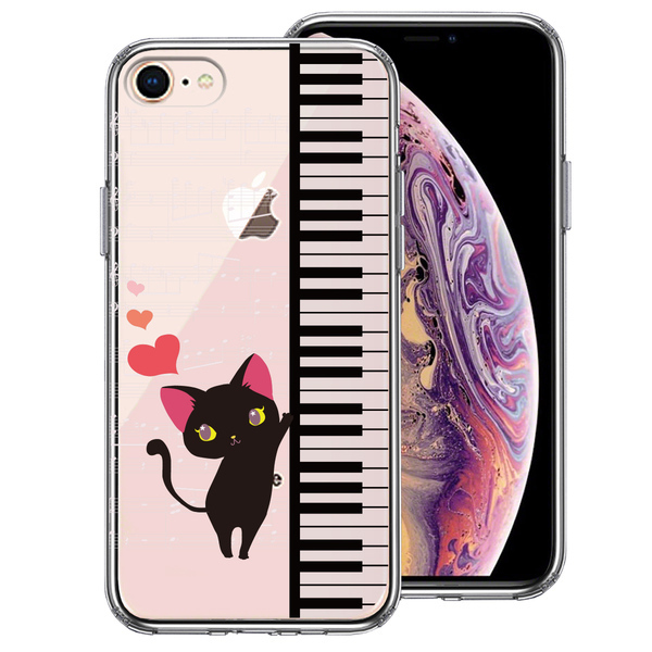 - iPhone7 iPhone8 ケース クリア ピアノ 猫ふんじゃった ハート スマホケース 側面ソフト 背面ハード ハイブリッド