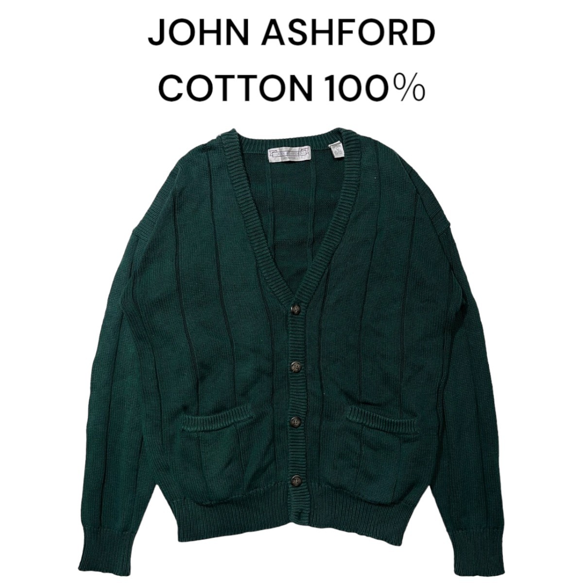 - JOHN ASHFORD コットン100% ニットカーディガン 古着 グリーン