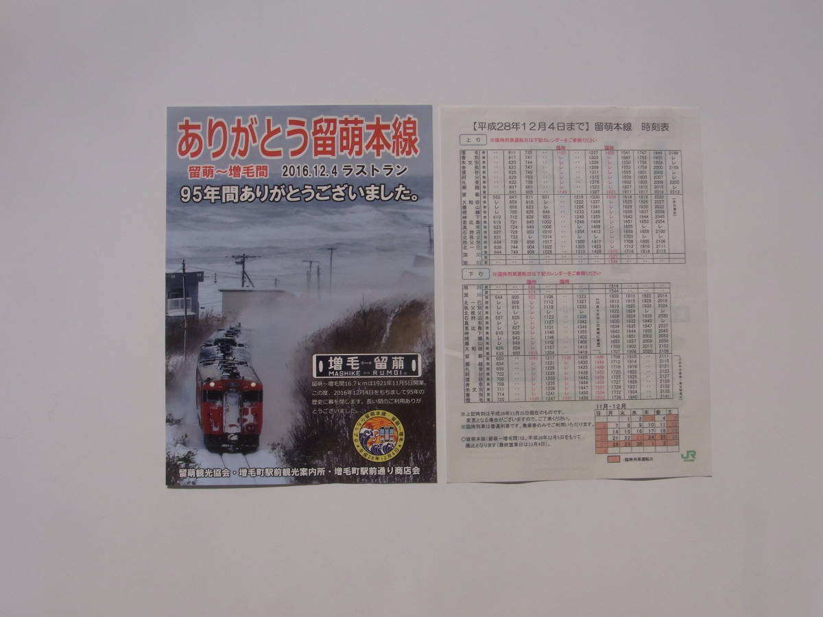 - 「ありがとう留萌本線」「時刻表」パンフレット
