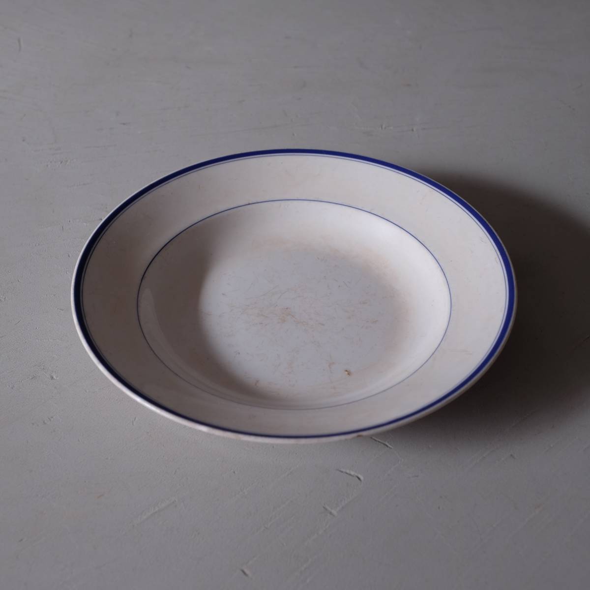 - 02774 日本硬質陶器 ブルーラインリム深皿 A / ニッコー DOUBLE PHOENIX プレート 古道具