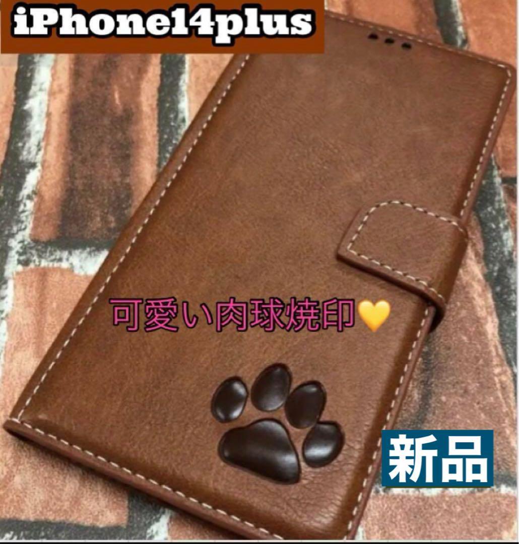 > 【iPhone14plus専用】可愛い肉球焼印!手帳ケース新品未使用【ブラウン】