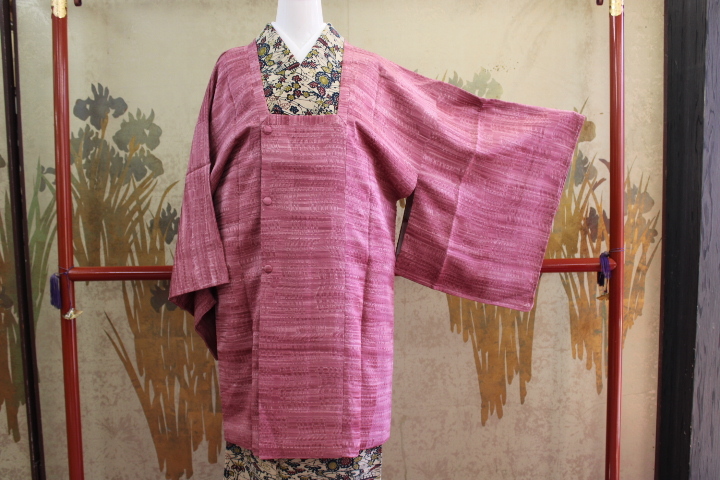- きもの今昔6360 道行コートコレクション 正絹高級紋意匠横柄地紋様 弁柄色刷毛柄染 身丈86cm