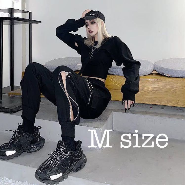 - ボトムス サイドジップ ジョガーパンツ スリット イージーパンツ ダンス 衣装 黒 ブラック M