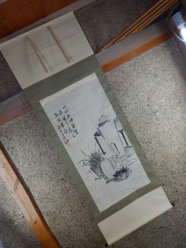 - 掛け軸012002 奥原晴湖 63x180cm 明治 女流南画家水墨山水圖 真作 直筆 本物 骨董 水墨画 絵画日本製 MADE IN JAPAN