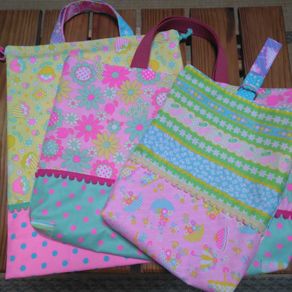 > セ4 入園入学準備ピンクスpinks手提げレッスンバック上履き入れ体操服袋女の子 ハンドメイド シューズケース 絵本バッグ 体操着袋