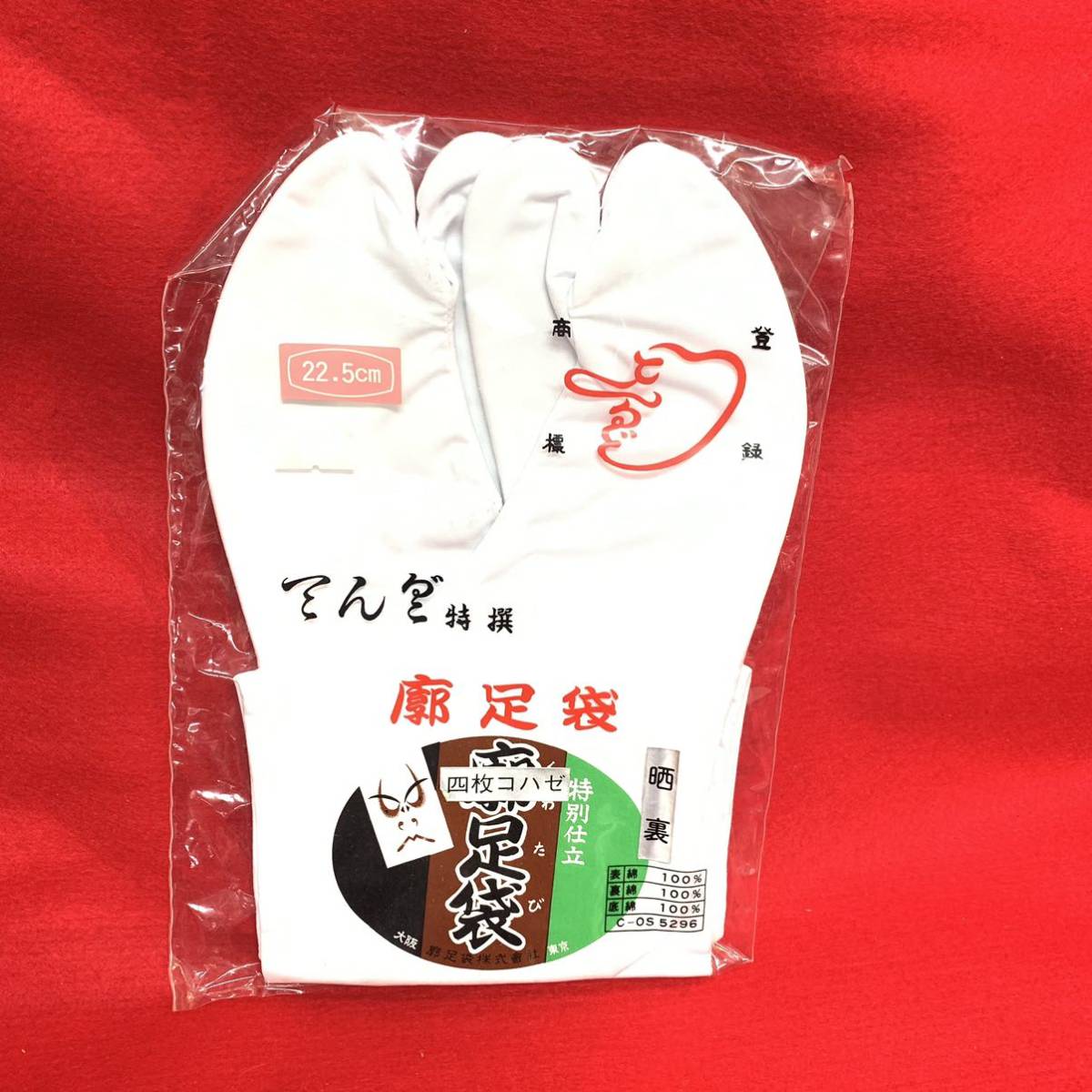 ☆新品☆未使用品☆足袋 てんぐ 廓足袋 22.5cm 四枚コハゼ 綿100% 白 和装小物 晒裏 (01286