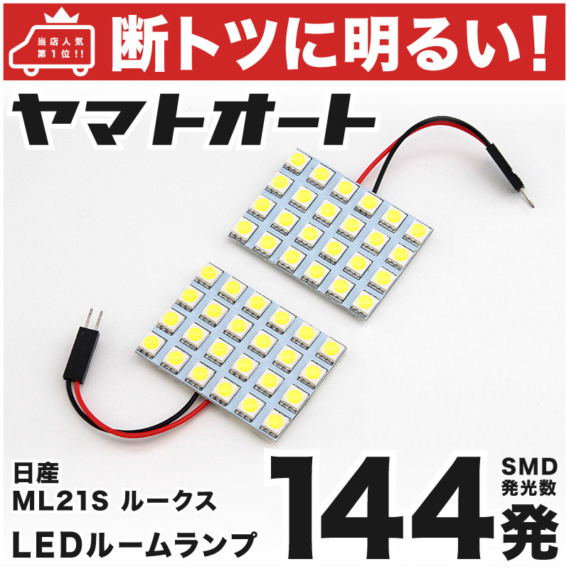 > ◆ルークス ML21S ニッサン【断トツ144発】 LED ルームランプ 2点セット [H21.12~H25.2] 室内灯 パーツ 車中泊 基板タイプ ROOX
