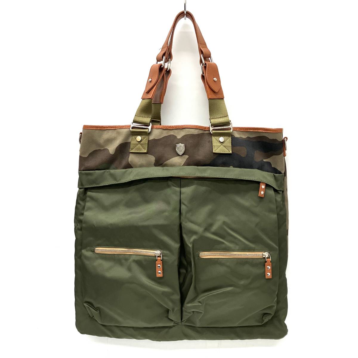 - Orobianco オロビアンコ 2WAYトートバッグ ショルダーバッグ キャンバス レザー 迷彩柄 緑系 カーキ MADE IN ITALY イタリア製