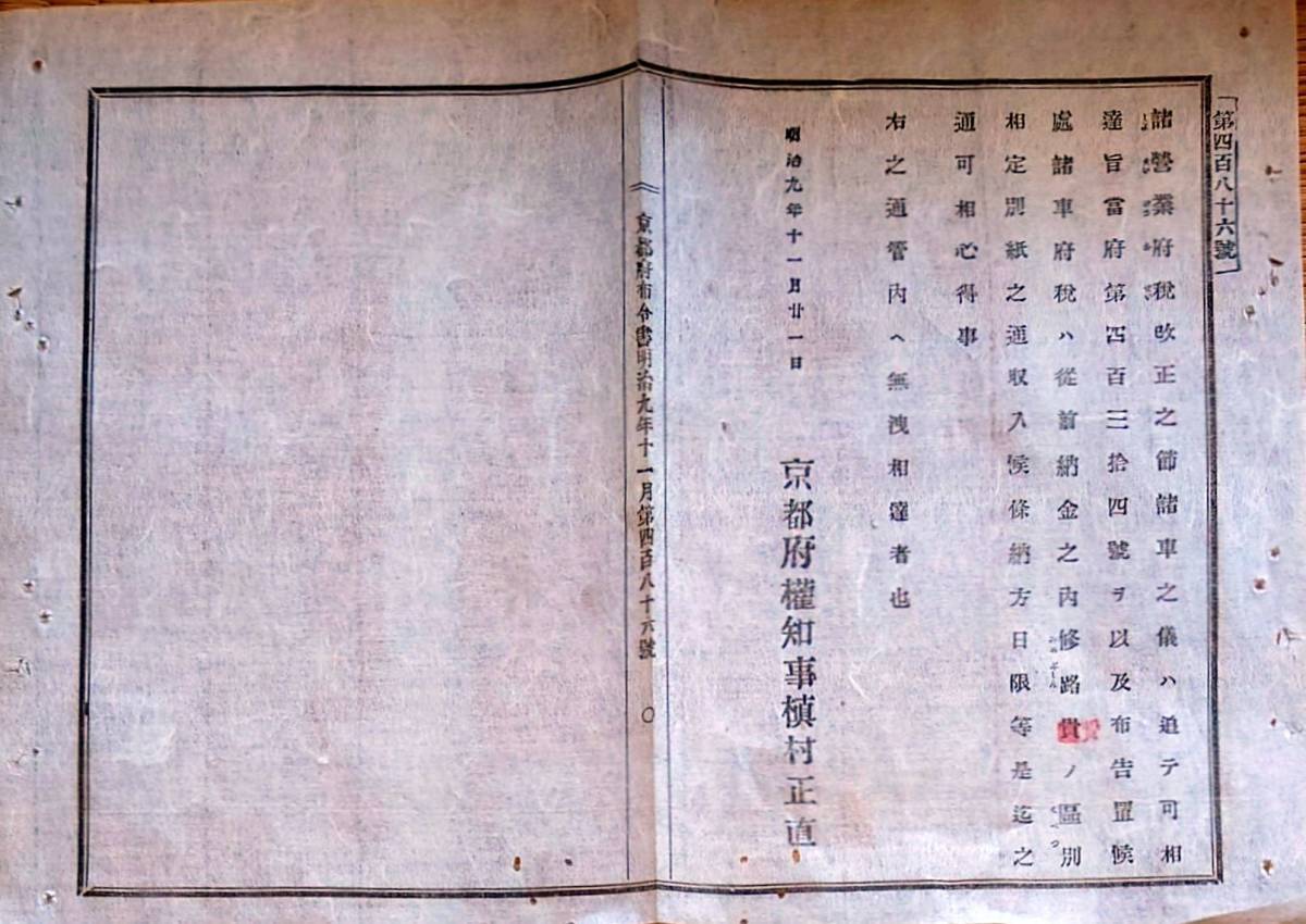 - f23072809〇明治布告布達 諸営業府税改正の儀 京都府 槇村正直 明治9年〇和本古書古文書