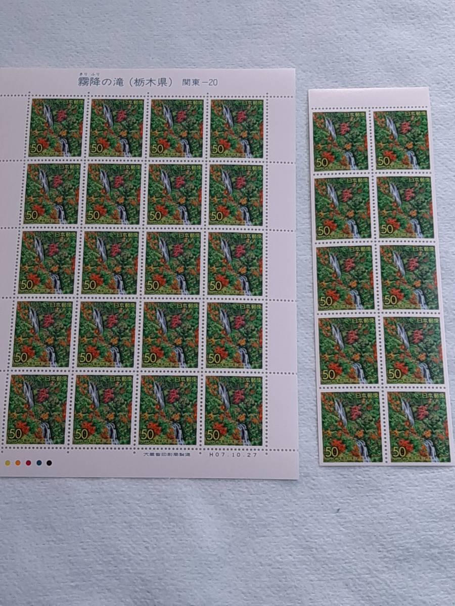 ふるさと切手 霧降の滝(栃木県)関東-20 H7 切手シート1枚と10枚シート
