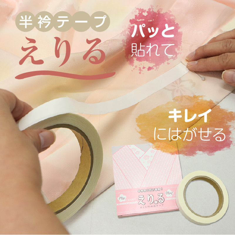 - 【針子*定額】【半衿両面テープ えりる】衿とじ用両面テープ 半衿テープ/縫い付け不要/半衿用/緊急時/針不要/簡単/きれいに剥がせる
