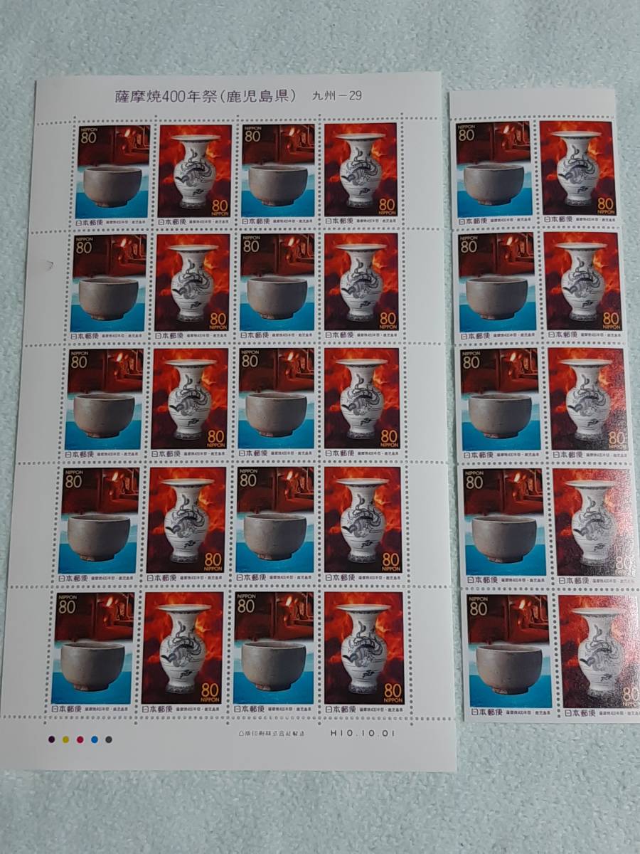 ふるさと切手 薩摩焼400年祭(鹿児島県)九州-29 H10 切手シート1枚と10枚シート