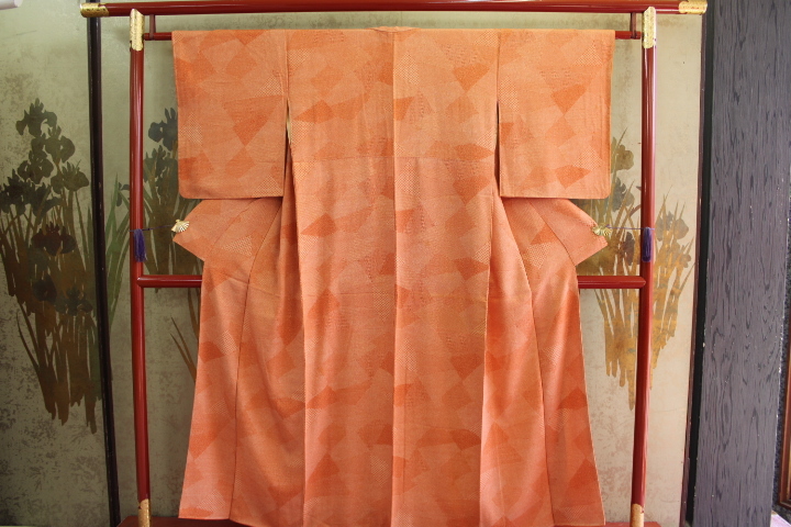 > きもの今昔6482 小紋のきもの 広衿袷手縫い仕立て 正絹一越地鮫小紋 割り付けで小紋の文様が違う 身丈149cm