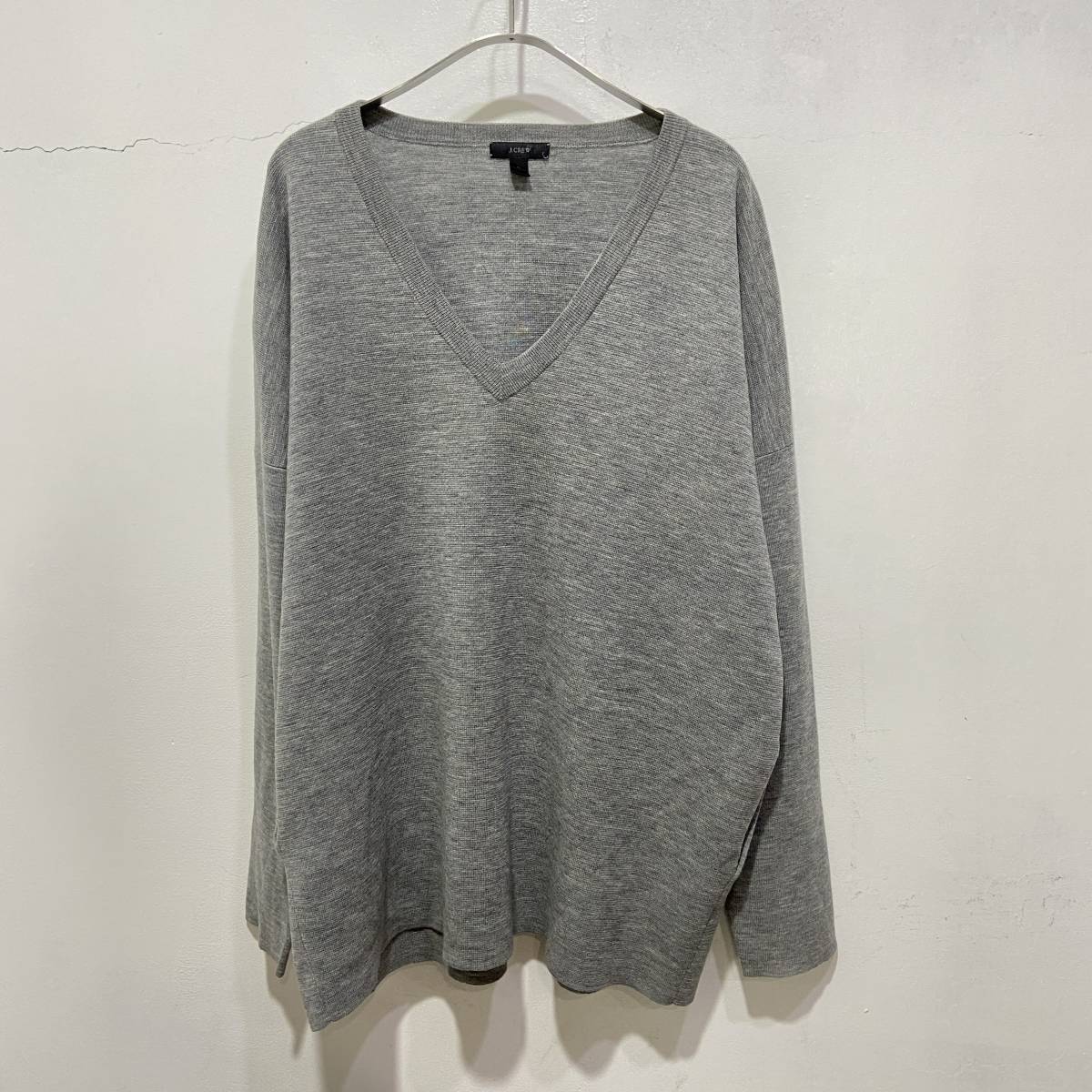 - 送料無料☆J.CREW☆ジェイクルー☆Vネックウールセーター☆Vネックニット☆無地☆グレー☆XL☆B24M