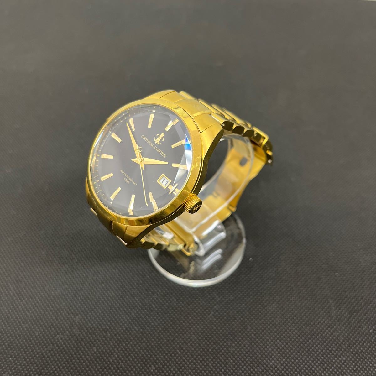 - [稼働品]CRYSTAL CARTER クォーツ 黒文字盤 ゴールドカラー 腕時計 時計 240212号