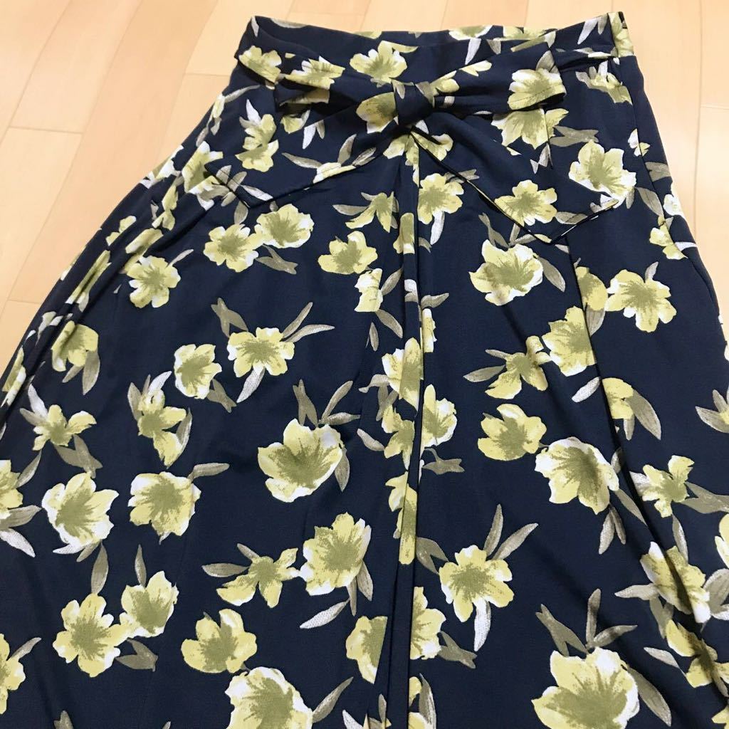 - ガウチョパンツ ズボン 長ズボン レディース Lサイズ 花柄 ルームウェアにも 紺色 a20