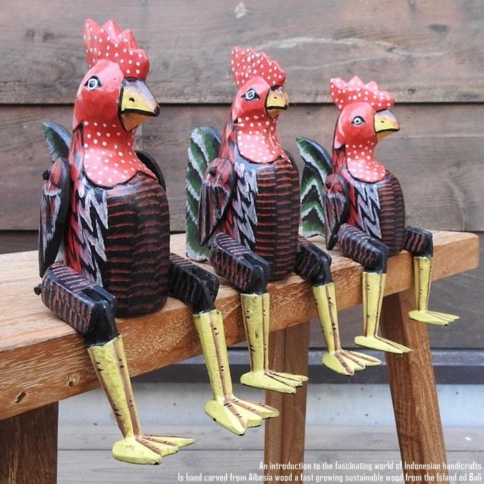 > お座り ニワトリさん Sサイズ ウェルカム人形 鶏 にわとり 鳥 木製 木彫りの置物 動物インテリア アジアン雑貨 動物置物