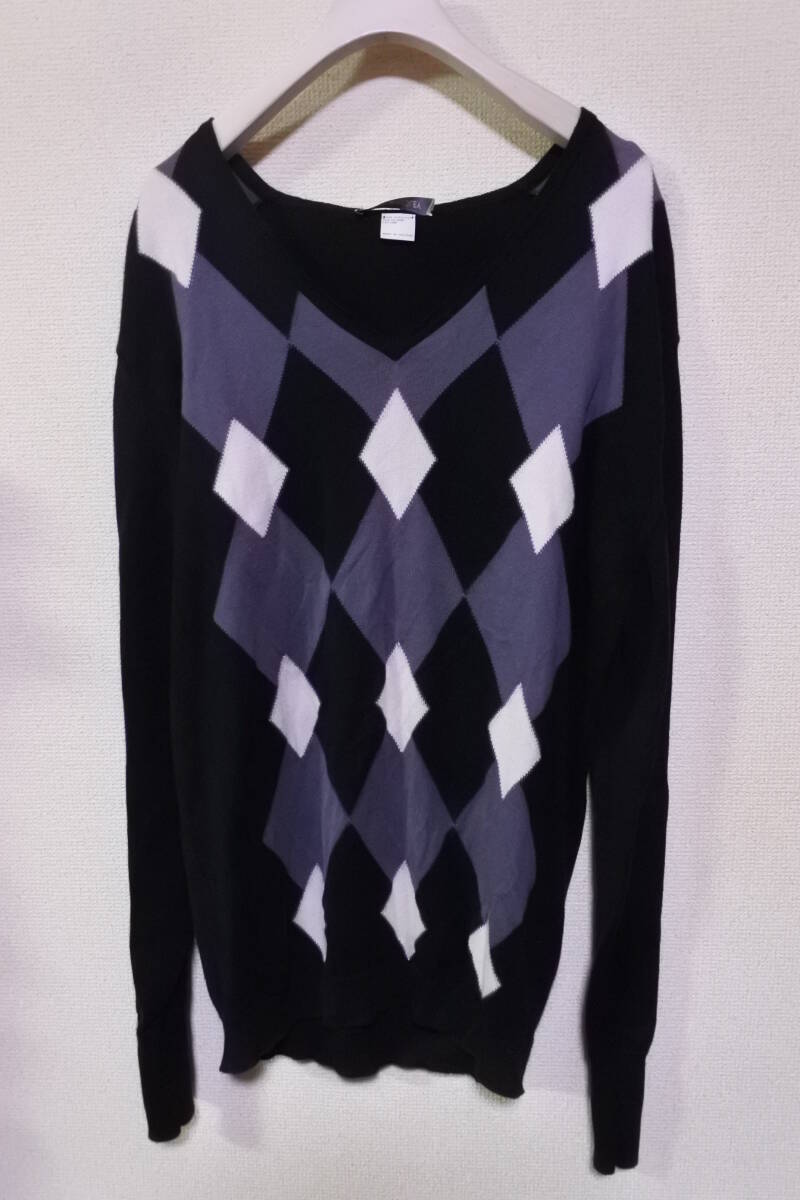 - JOHN SMEDLEY ジョンスメドレー コットンニット セーター size M-L ブラック アーガイル柄 英国製