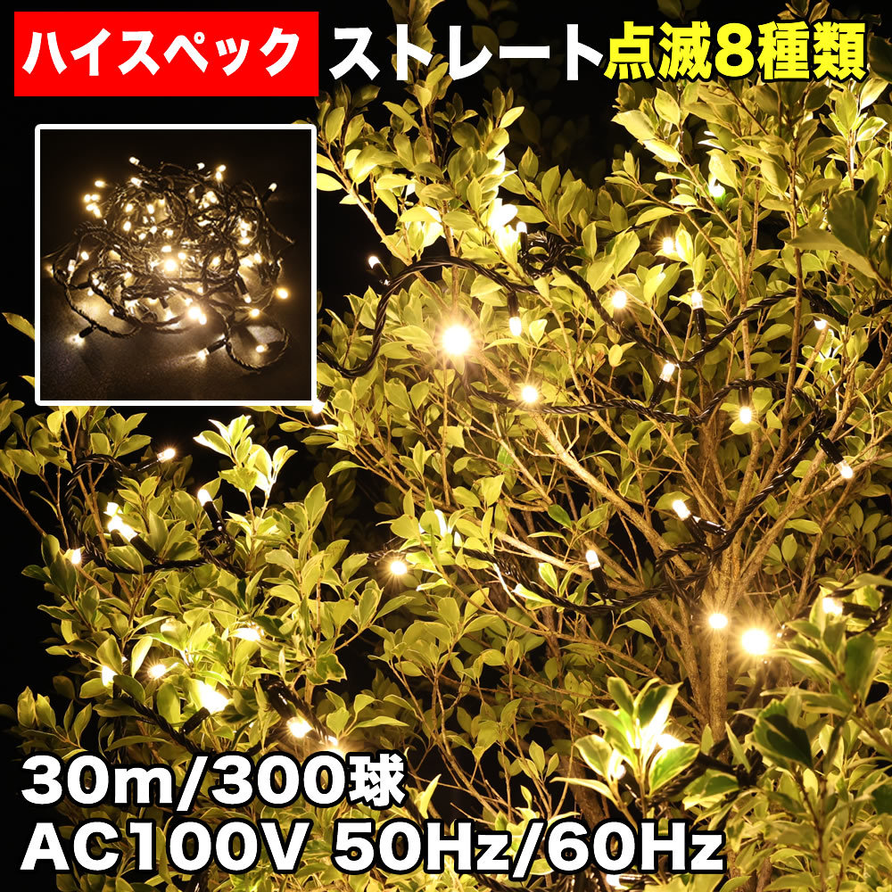 - クリスマス 防水 イルミネーション ストレート ライト ハイスペックタイプ LED 300球 シャンパンゴールド 8種類点滅 Aコントローラセット