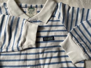 > エーグル★長袖シャツ★24month/90cm★白×水色★胸ロゴワッペン★AIGLE m
