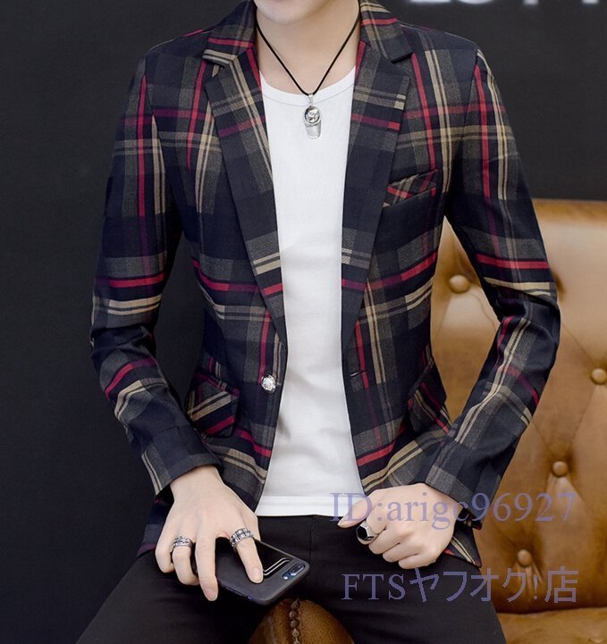 > S898☆新品テーラードジャケット メンズ 細身スーツ上着 春秋 ブレザー 紳士用 アウター 通勤 お兄系 レッド M