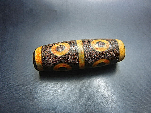 - ★西蔵至純天珠★XT9152 牙黄 八眼 特上級 39mm火供龍紋 入手難