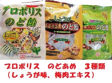 - プロポリス入3種類のどあめ のど飴 (はちみつ、しょうが、梅肉エキス)代引不可 メール便 ポスト投函 送料無料