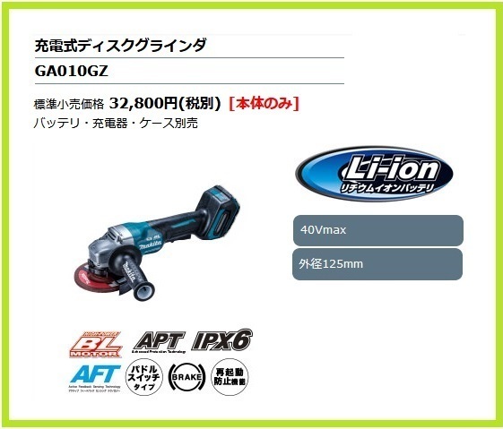 > マキタ 125mm 40Vmax 充電式ディスクグラインダ GA010GZ (本体のみ) 【パドルスイッチタイプ】 ■安心のマキタ純正/新品/未使用■