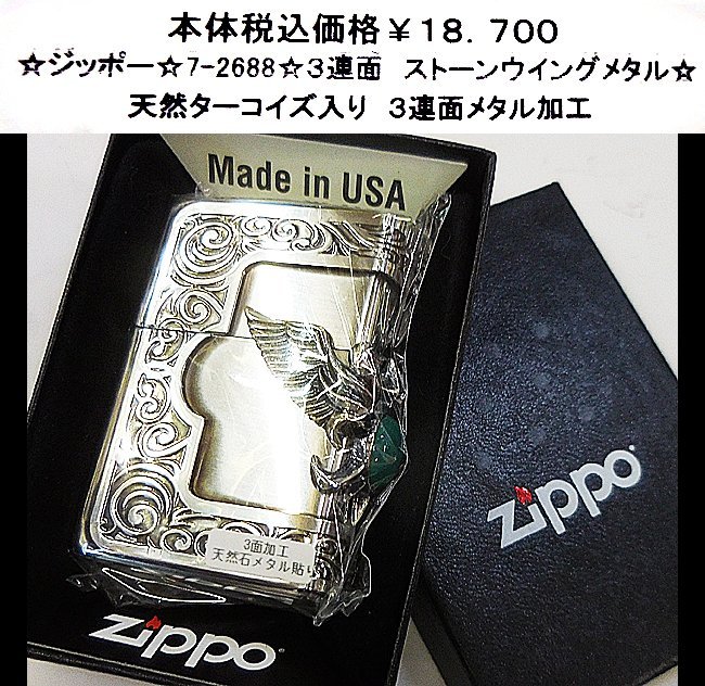 - ☆ジッポー☆7-2688☆3連面 ストーンウイングメタル☆