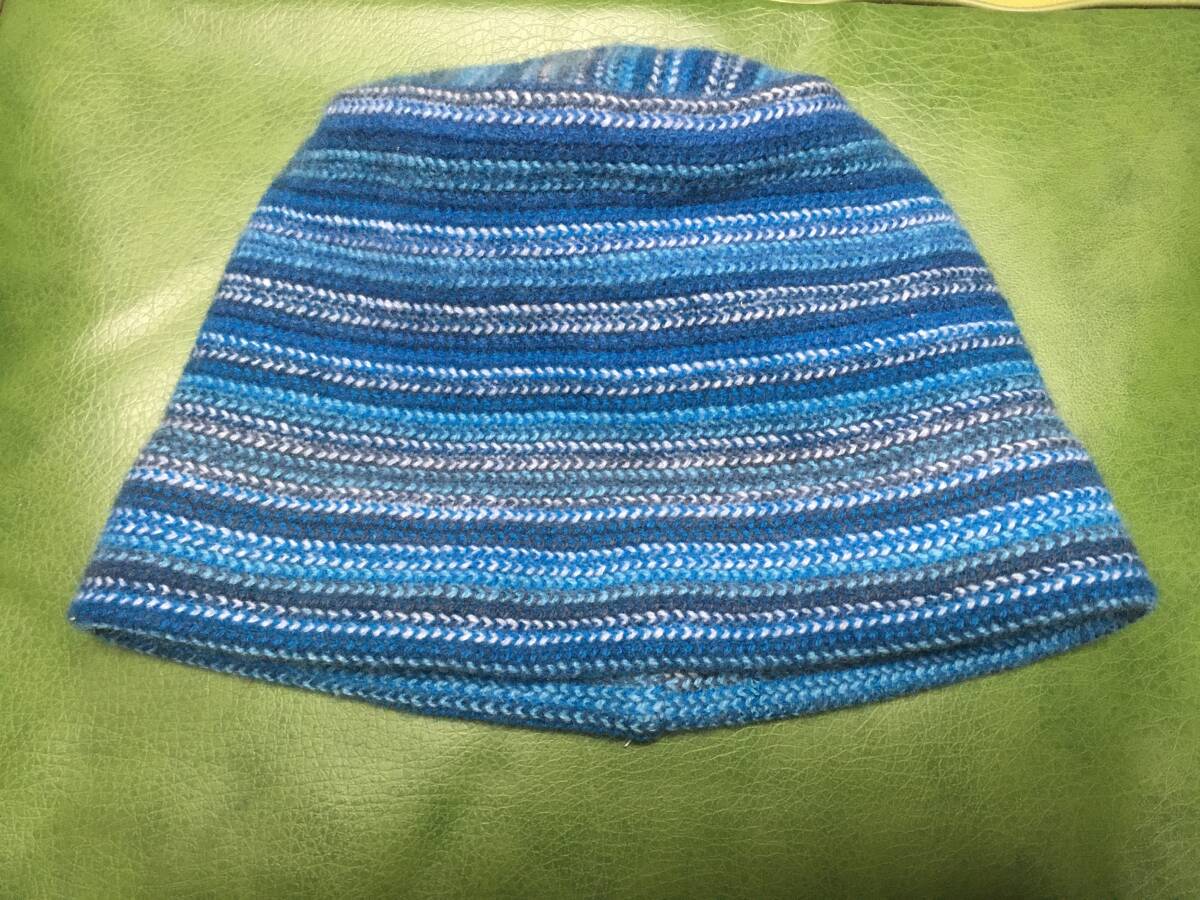 > 2402SCOTLAND英国UK製フィオナ マッケイFIONA MACKAYウールWOOLニット マルチボーダー クラッシャーHATハット帽子バケットCAPキャップ