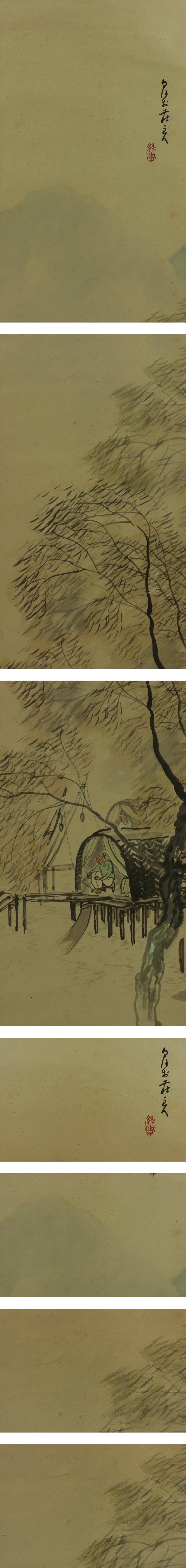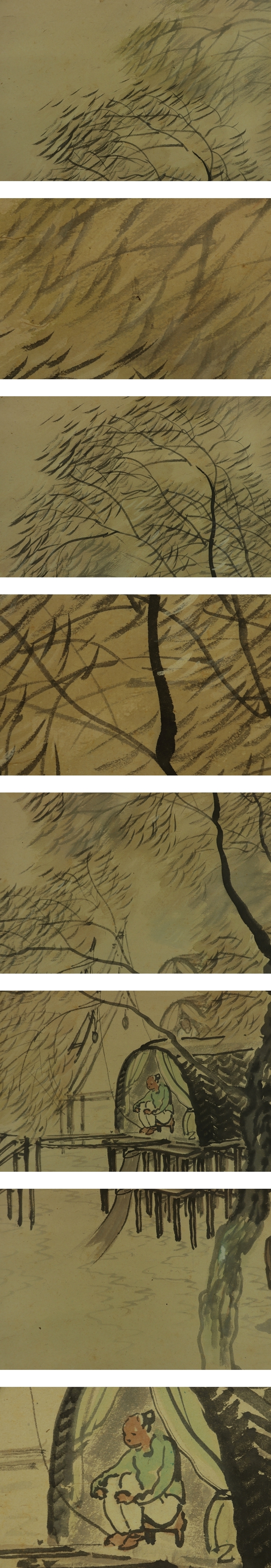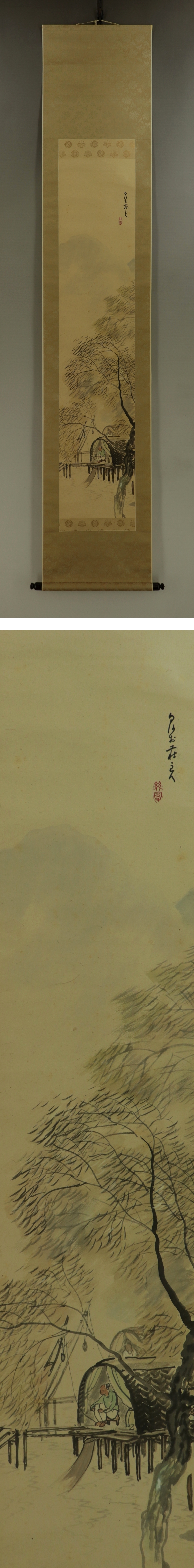 - 【模写】橋本関雪【秋江漁料】◆紙本◆共箱◆掛軸 s01041