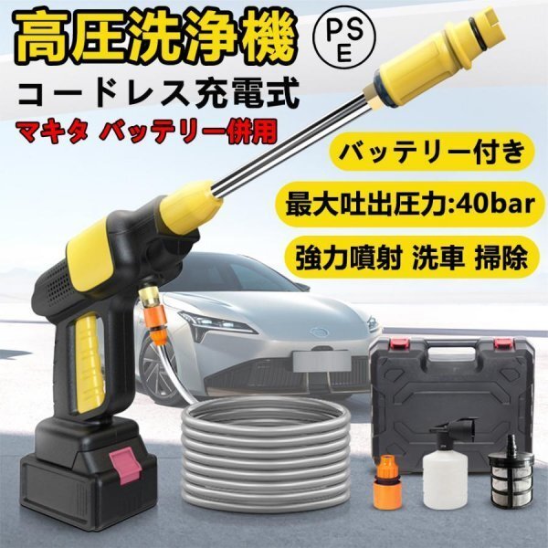 - 高圧洗浄機 充電式 コードレス 軽量 マキタ バッテリー併用 ハンディ クリーナー 強力噴射 家庭用 洗車タオル 小型 電動工具 洗車 掃除