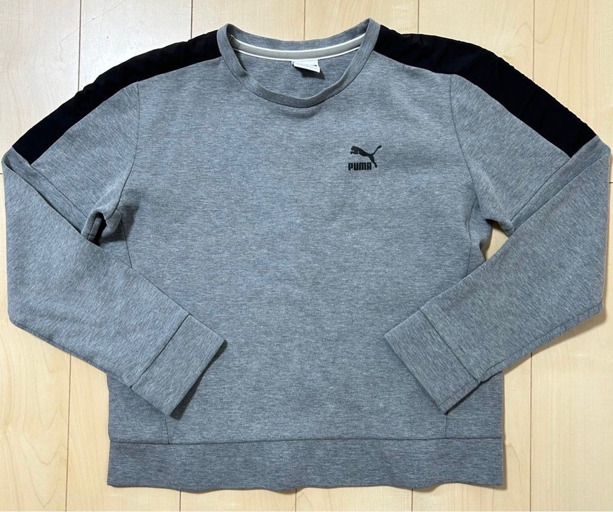 > 美品 PUMA プーマ クルーネック ストレッチ 長袖 スウェット トレーナー トップス グレー レディース Mサイズ