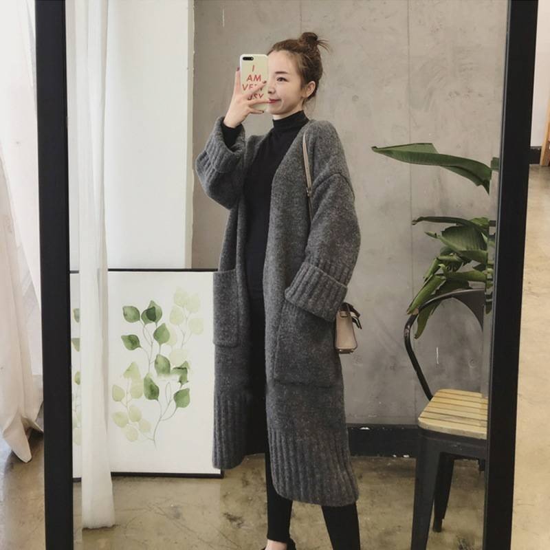 - 秋新作はゆったりした膝丈ニットに厚手カーディガンをアウターウーマン/グレーbq201